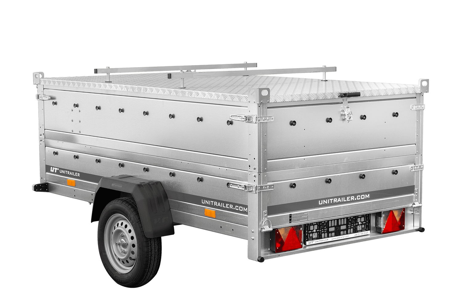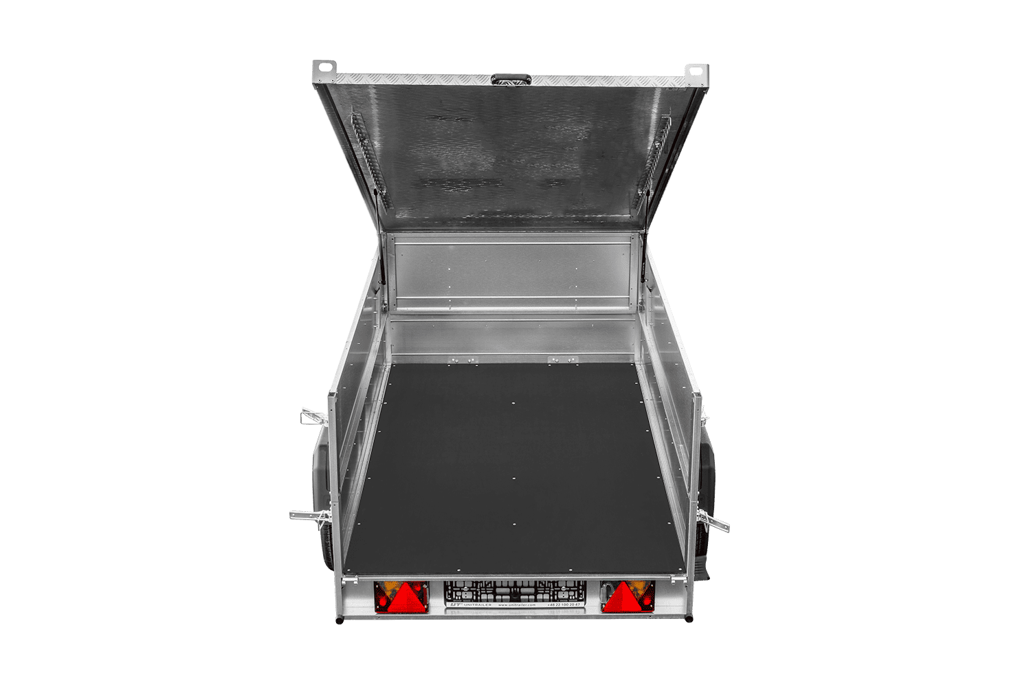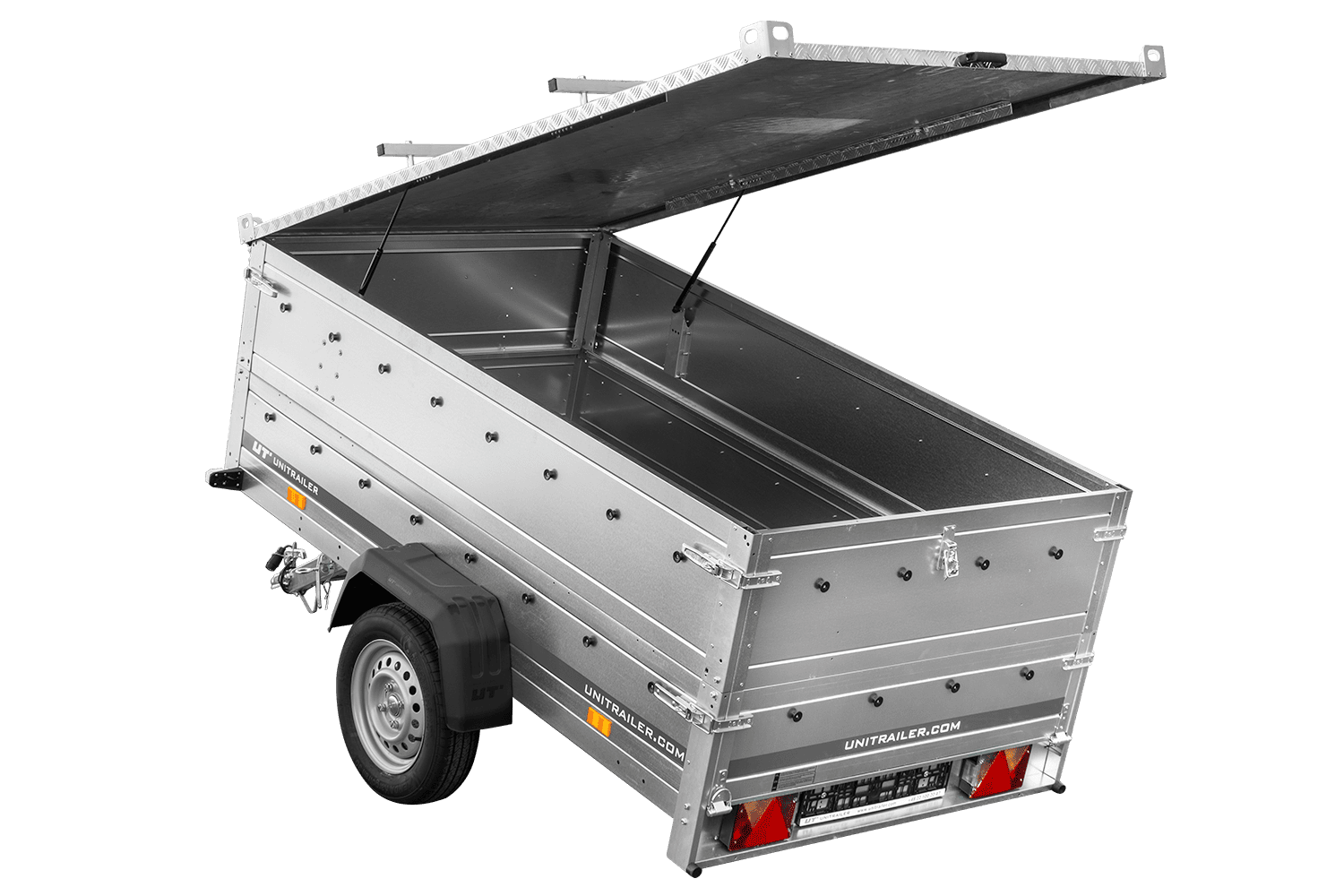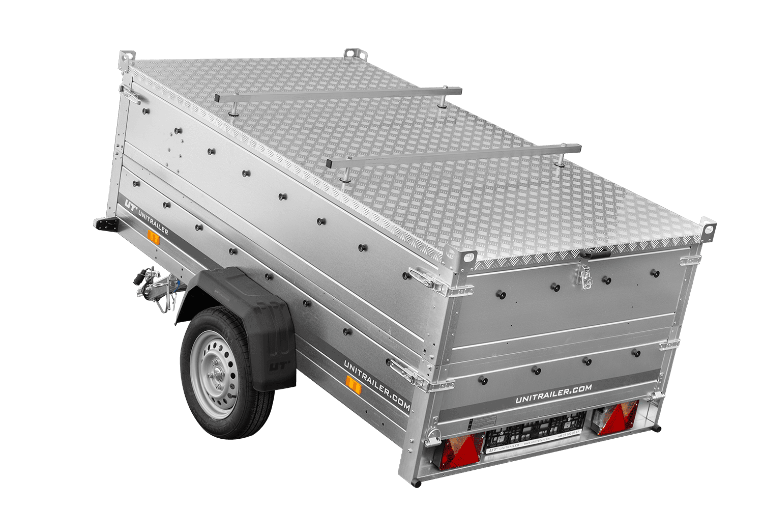 Capot en aluminium pour la remorque UNITRAILER GARDEN TRAILER 230 KIPP. Un capot légèr et résistante de seulement 55,72 kg qui protégera les marchandises transportées. Equipé de doubles renforts sur les côtés, qui garantissent une position ferme sur les côtés et rigidifient en outre l'ensemble de la structure. En haut de capot se trouvent des rails montés sur lesquels vous pouvez placer une galerie de toit ou un porte-vélos, gagnant ainsi encore plus d'espace pour transporter divers types d'objets.
