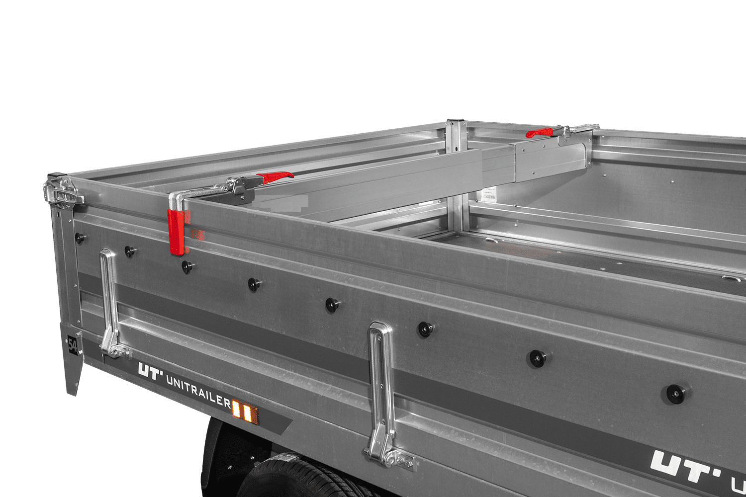 - Poutre latérale UNITRAILER avec portée réglable de 2400 à 2700 mm. Conçu pour sécuriser les marchandises et clôturer les espaces de chargement dans les remorques, les camionnettes de livraison et les camions.