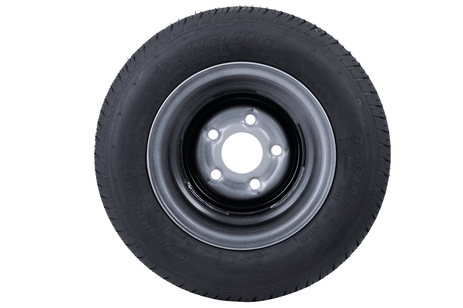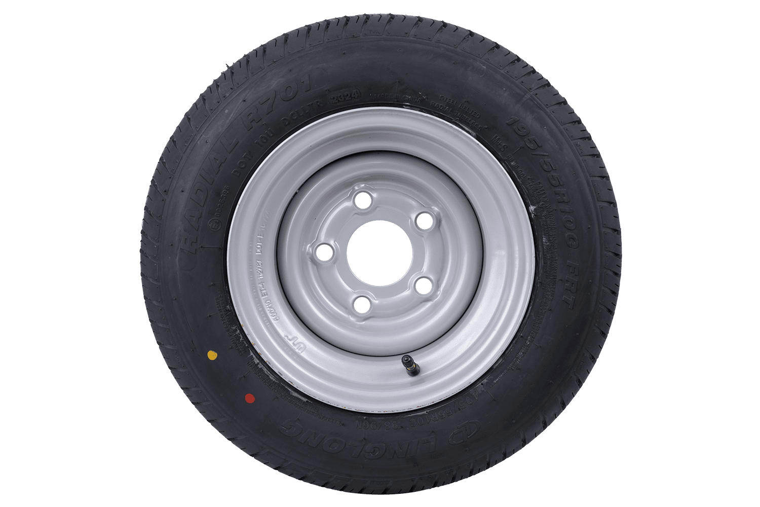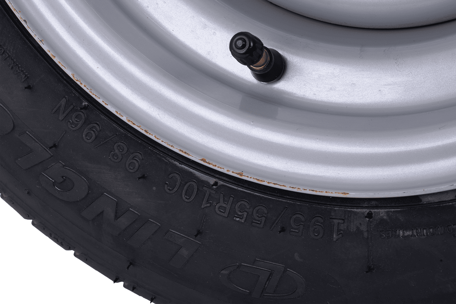 - OUTLET Roue renforcée conçue pour les remorques lourdes. Pneu LINGLONG 195/55 R10C 98/96N, assurant sécurité et stabilité pendant la conduite. Jante en acier UNITRAILER 6Jx10" 5x112 ET:-4. La capacité de charge maximale de la roue est de 750 kg.