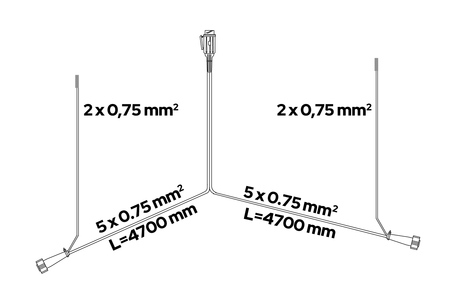 Le faisceau est équipé de deux connecteurs à baïonnette 5 broches pour le raccordement des feux arrière. Le système à baïonnette assure une installation rapide et sécurisée, éliminant ainsi le risque de déconnexion accidentelle pendant la conduite. La conception des connecteurs garantit une connexion étanche et protège les contacts contre la corrosion, ce qui se traduit par un fonctionnement à long terme et sans panne de l'ensemble de l'installation d'éclairage de la remorque.