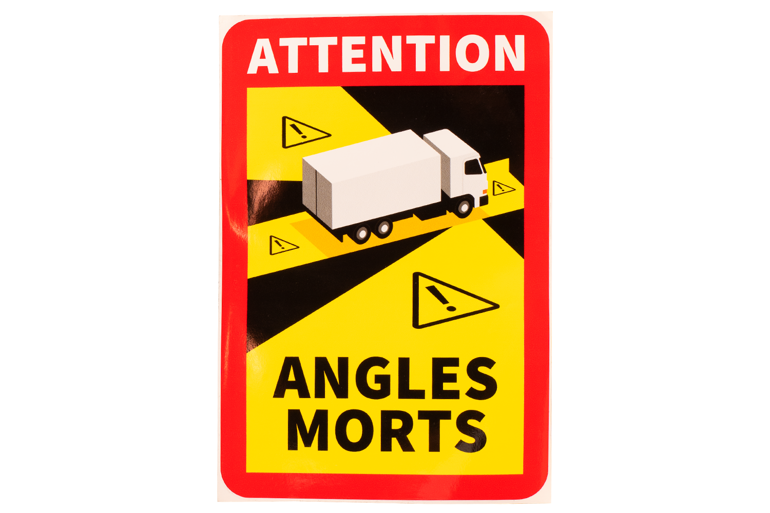 Le panneau d'avertissement HERMON « ANGLE MORT » est un marquage obligatoire pour les poids lourds circulant en France depuis le 1er janvier 2021. Il informe les autres usagers de la route, notamment les cyclistes et les piétons, des zones dangereuses à visibilité réduite autour du véhicule. Ce panneau mesure 250 mm de haut et 170 mm de large.