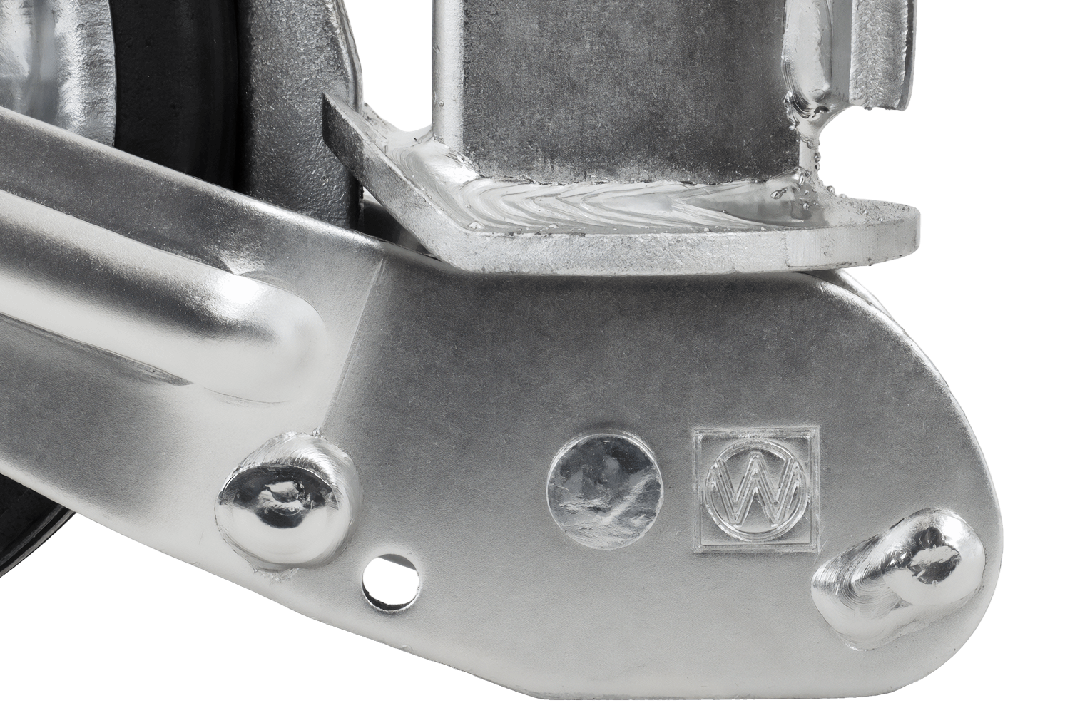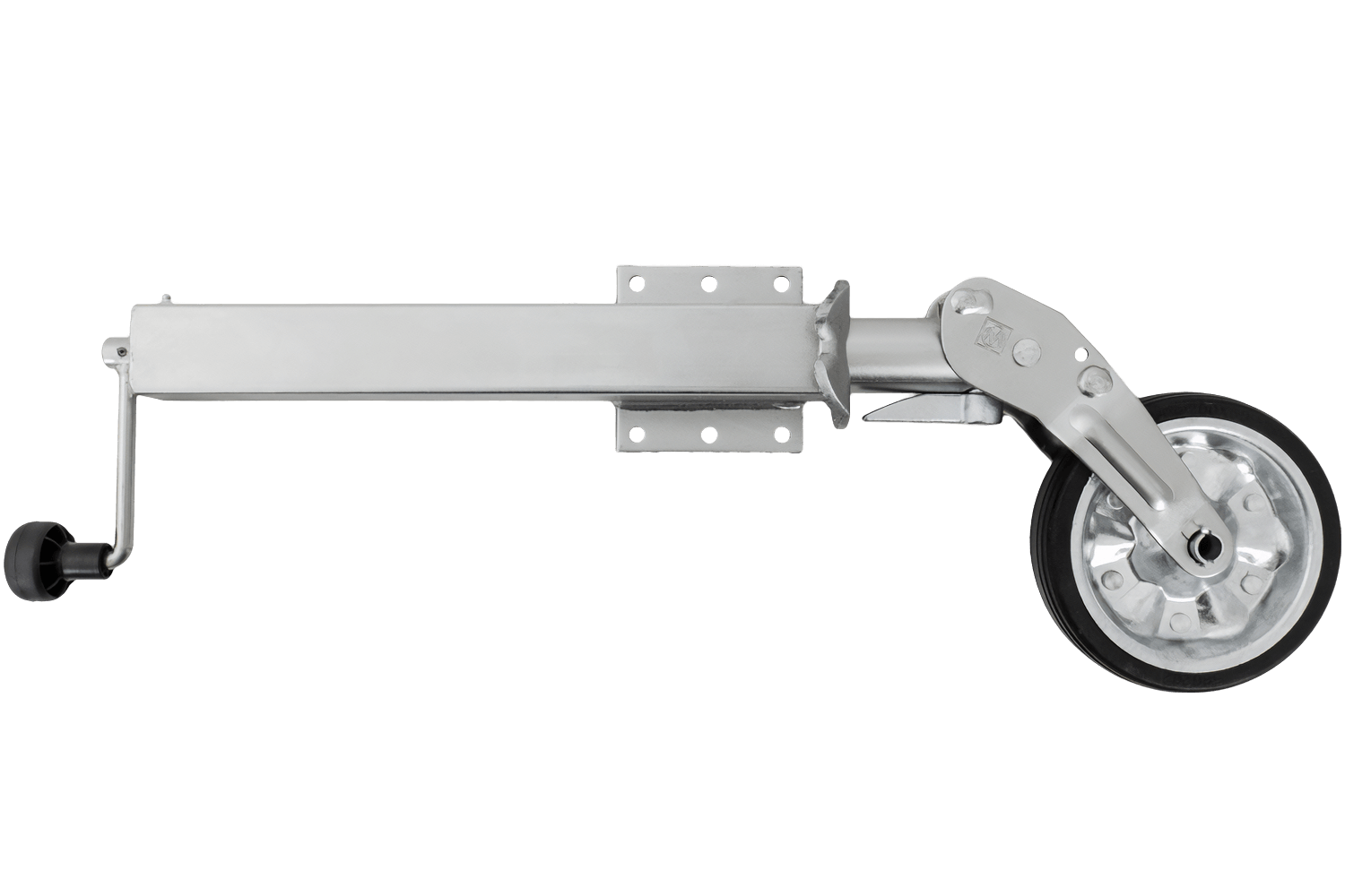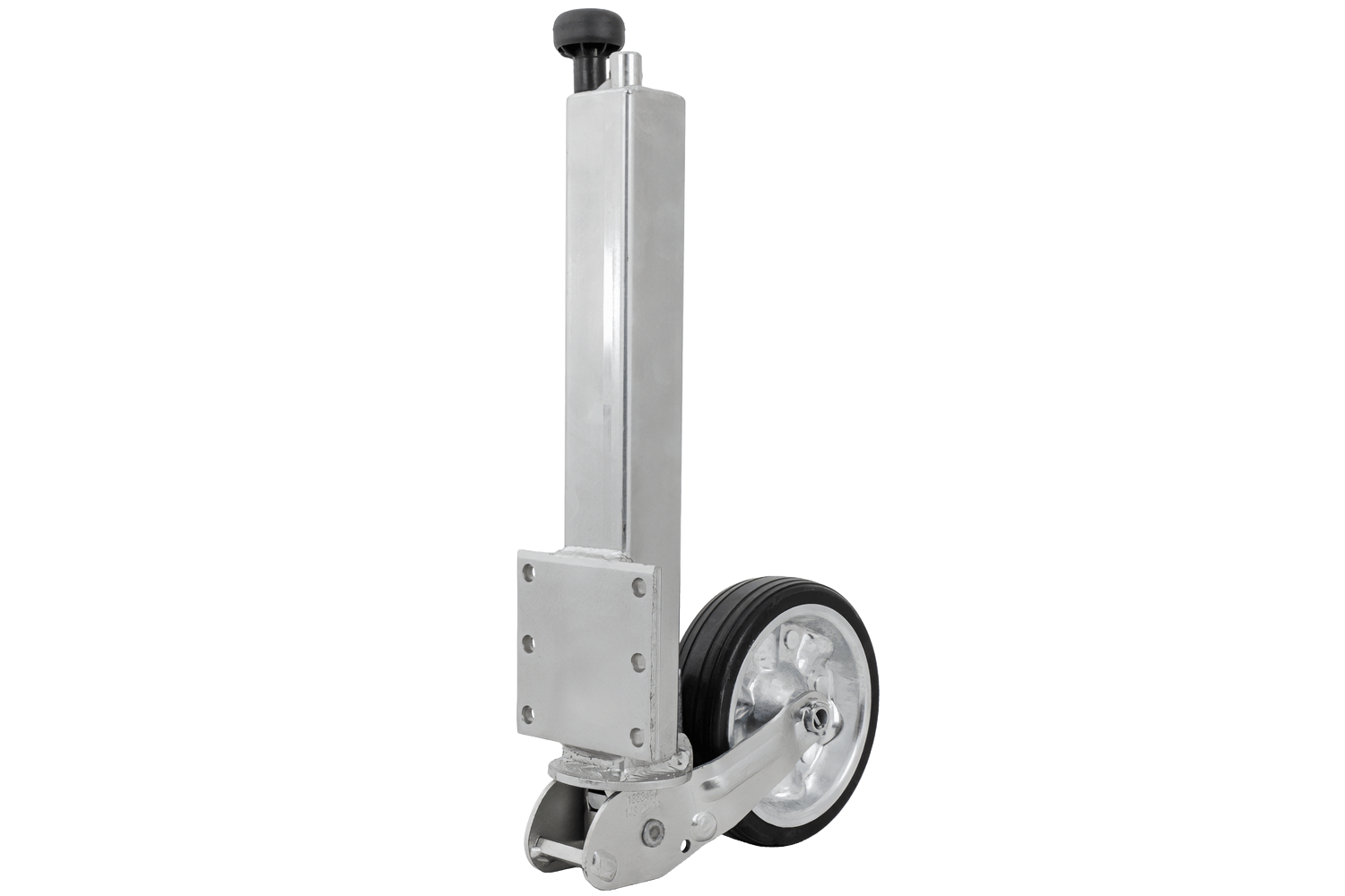 La roue est électrozinguée, ce qui la protège efficacement de la corrosion et des intempéries. Le mécanisme de levage est entièrement automatique, simplifiant considérablement l'utilisation quotidienne. Grâce à sa construction robuste en caoutchouc plein, sa jante en acier et ses roulements lisses, la roue jockey assure des manœuvres confortables, même sur terrain accidenté, tandis que la plaque de montage assure une fixation stable sur le timon de la remorque.