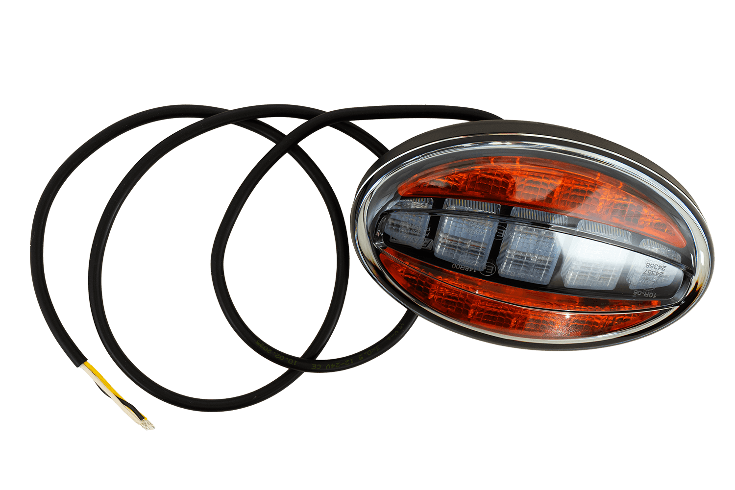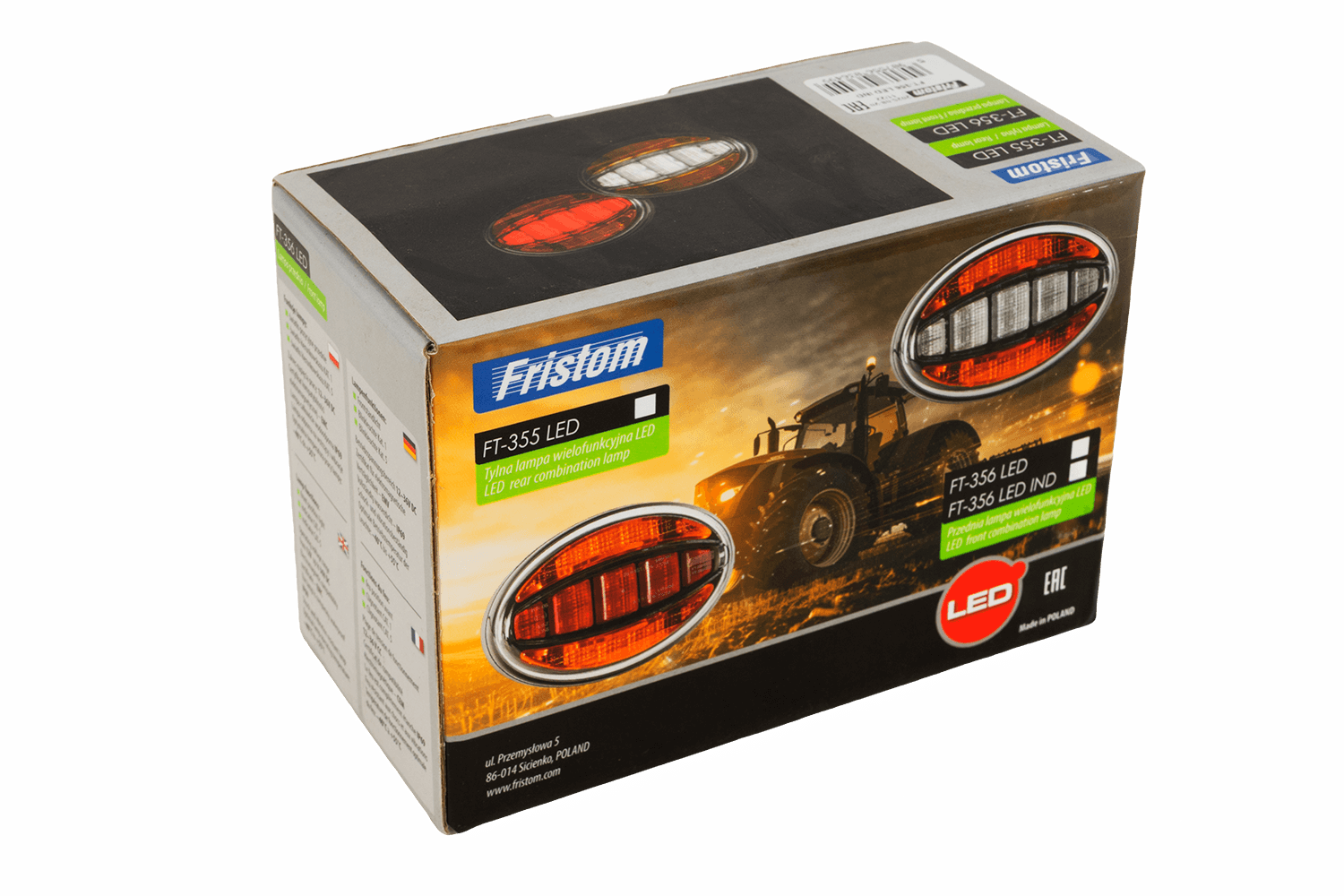 - Feu avant LED FRISTOM FT-356, montage côté gauche ou droit. Trois fonctions : feu de position, clignotant avant et arrière. Utilisé dans les véhicules agricoles tels que les tracteurs, les machines, les moissonneuses-batteuses et les excavatrices.