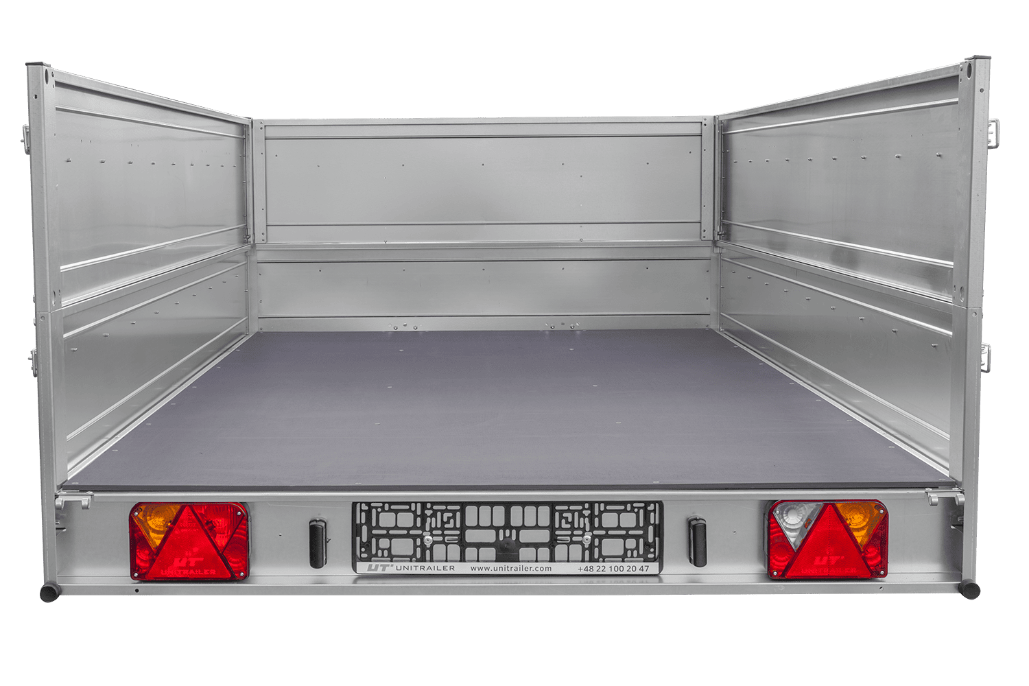 Une remorque avec côtés supplémentaires est une remorque à un seul essieu avec un PTAC maximal jusqu'à 750 kg. Pour faciliter le chargement et le déchargement, la remorque a la possibilité d'ouvrir ou de retirer la partie arrière. Des ridelles supplémentaires et amovibles d'une hauteur de 40 cm offrent jusqu'à 70 cm d'espace de transport. Une remorque conçue pour faciliter le transport de meubles, de palettes ou de matériaux de construction tels que des panneaux, des poutres ou des matériaux en vrac. Le grand espace de chargement vous permet de transporter en toute sécurité de plus grandes quantités de cultures, de terre, de plantes ou d'arbustes. Nous proposons une remorque pour voiture qui peut également être utilisée pour transporter facilement des machines et équipements de jardinage - tondeuses à gazon, motoculteurs ou quads.