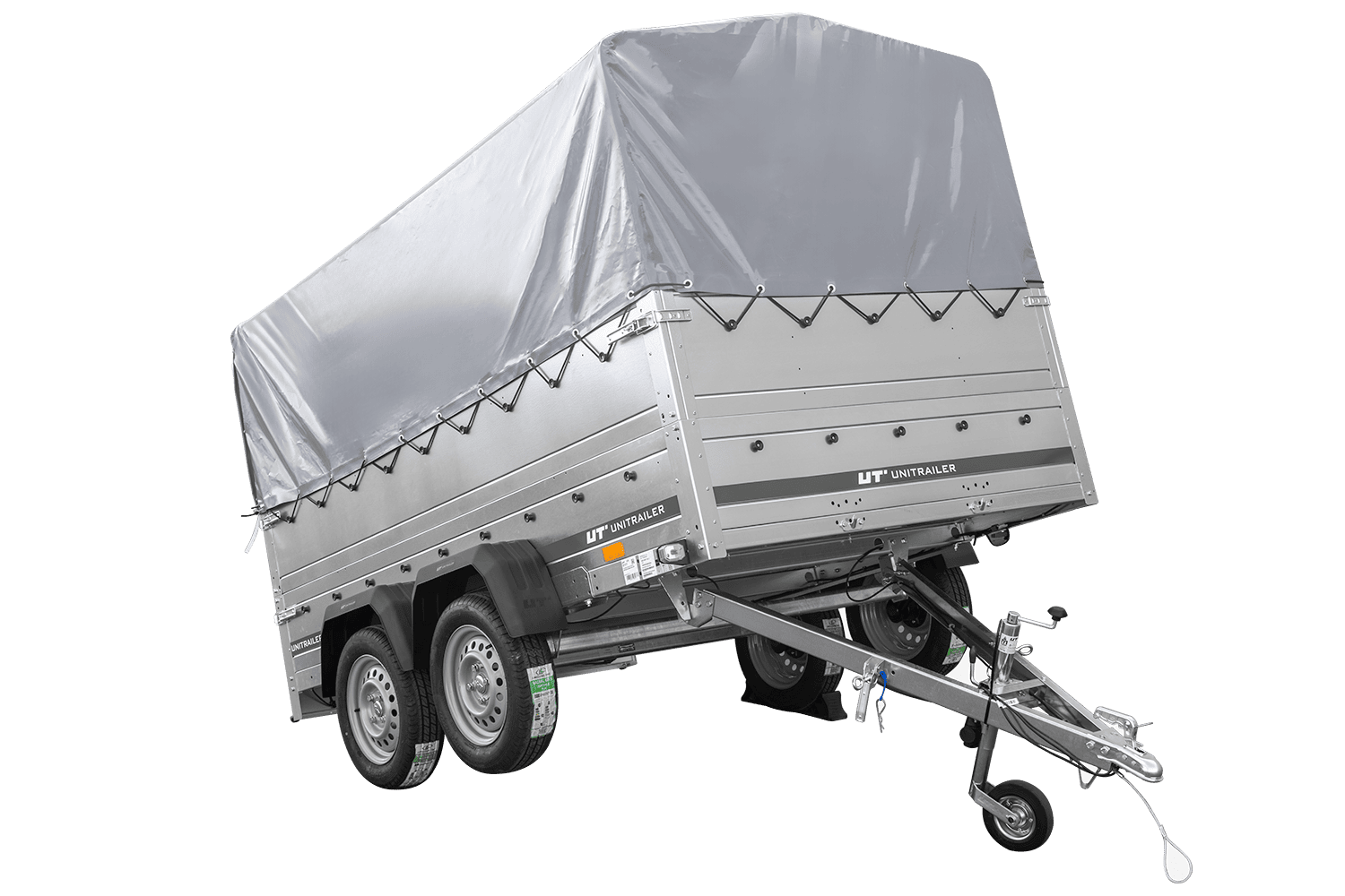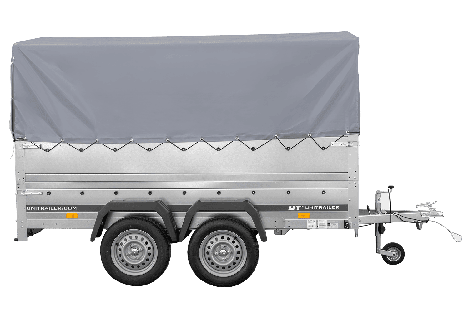 - Remorque UNITRAILER Garden 265/2 KIPP avec timon basculant. Surface de chargement : 264 x 150 cm. Hauteur avec ridelles et châssis : 150 cm. PTAC max. : 750 kg.