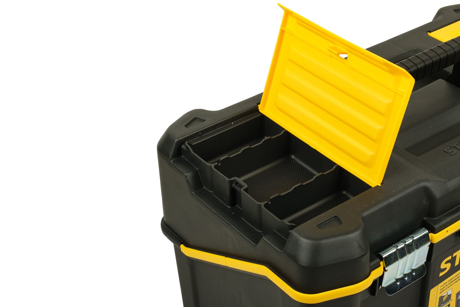 - STANLEY STST83397-1 coffre à 3 niveaux avec un système de console qui offre un accès complet aux outils. Fabriqué en plastique durable, il est doté de loquets métalliques et d'une poignée confortable. Organisation parfaite et accès rapide de contenu.