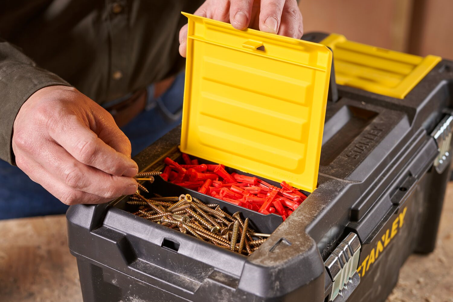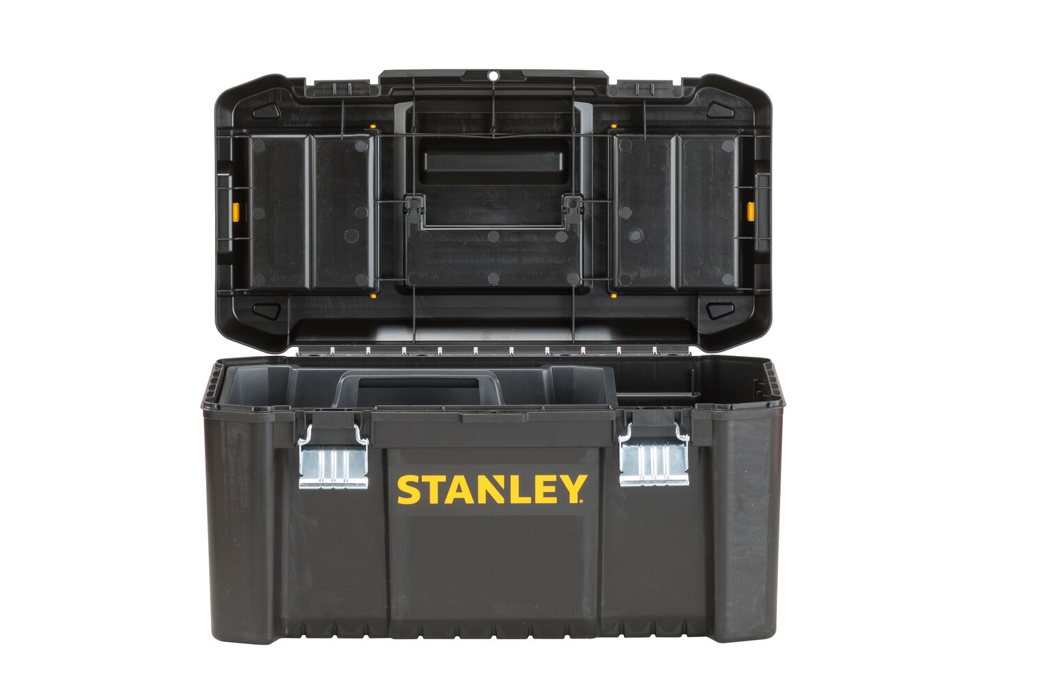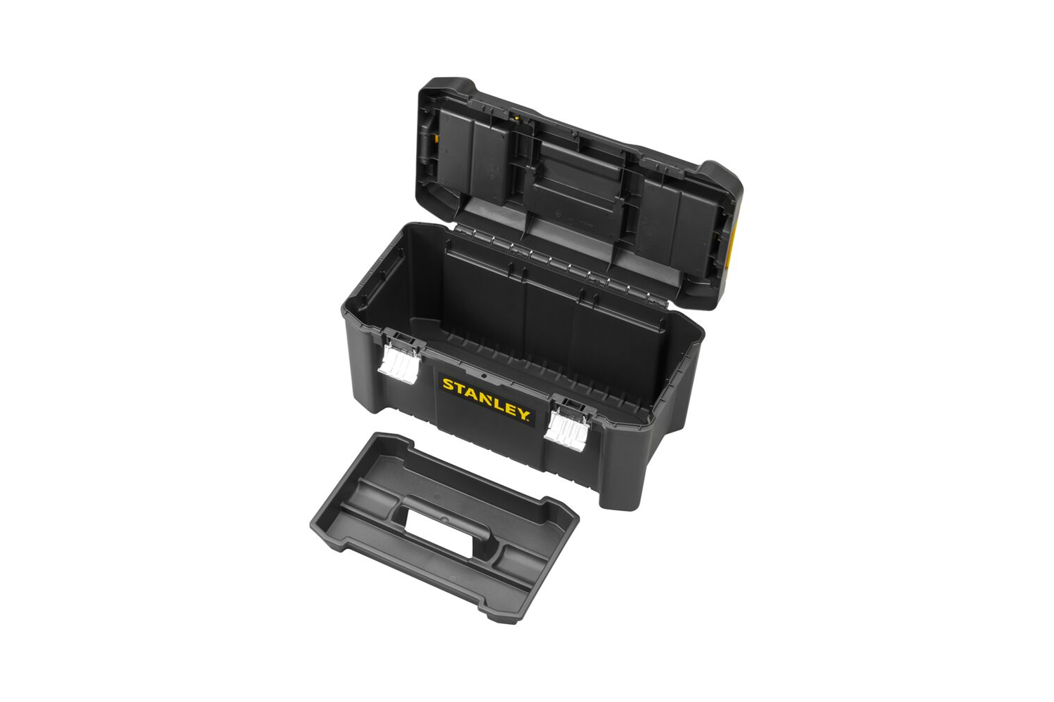 - Boîte à outils STANLEY ESSENTIAL 16,8 l, en plastique durable, loquets métalliques. Solution pratique et sûre pour ranger les outils. Plateau amovible, les compartiments dans le couvercle, poignée pliable assurent le confort sur tous les terrains.