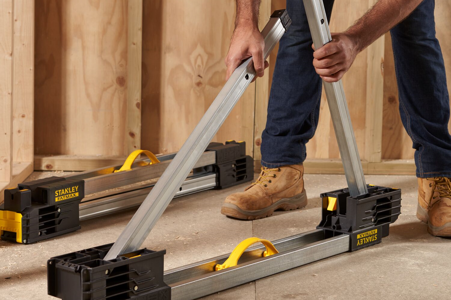 - Ensemble 2 supports métalliques Stanley FATMAX FMST1-75763 support stable jusqu'à 900 kg,. Permet la coupe de tuyaux grâce à la rainure en V-Groove, fonctionne avec des pinces. Pliable, durable, facile à transporter – idéal pour le travail sur le terrain.