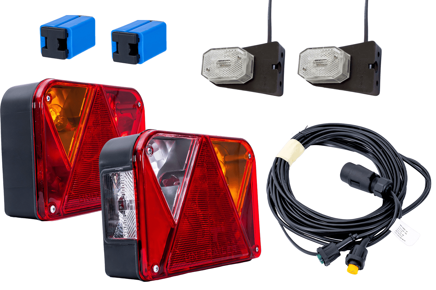 Le kit d'éclairage est une installation électrique complète qui assure un éclairage complet et conforme à la réglementation pour les remorques, semi-remorques et autres véhicules de transport , améliorant ainsi leur visibilité et leur sécurité routière. Il comprend des feux arrière, des feux de gabarit, un faisceau de câbles et des connecteurs rapides. Ces connecteurs rapides permettent une installation simple et rapide et assurent une connexion durable et sûre entre les feux de gabarit et le câblage. Grâce à des composants de haute qualité, le kit garantit un fonctionnement fiable et une excellente visibilité. et conforme aux normes de sécurité en vigueur. C'est la solution idéale pour ceux qui recherchent un système d'éclairage automobile complet et durable .