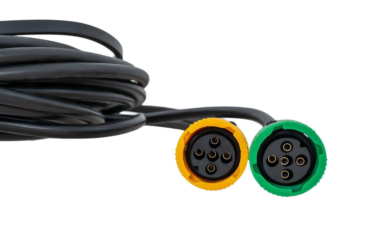 Le faisceau est équipé de deux connecteurs à baïonnette 5 broches pour le raccordement des feux arrière. Ce système assure une installation rapide et sûre, éliminant ainsi tout risque de déconnexion accidentelle pendant la conduite. La conception du connecteur garantit une connexion étanche et protège les contacts de la corrosion, garantissant ainsi un fonctionnement durable et sans problème de l'ensemble du système d'éclairage de la remorque.
