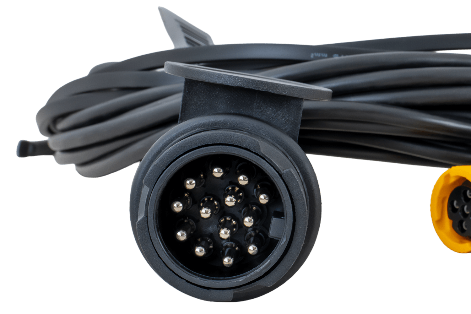 Le système électrique MANTES est une solution pratique et fiable pour les remorques de voiture. Le câble principal de 5,2 mètres, d'une section de 0,5 mm², est équipé d'une prise standard à 13 broches , garantissant une compatibilité universelle avec la plupart des véhicules.