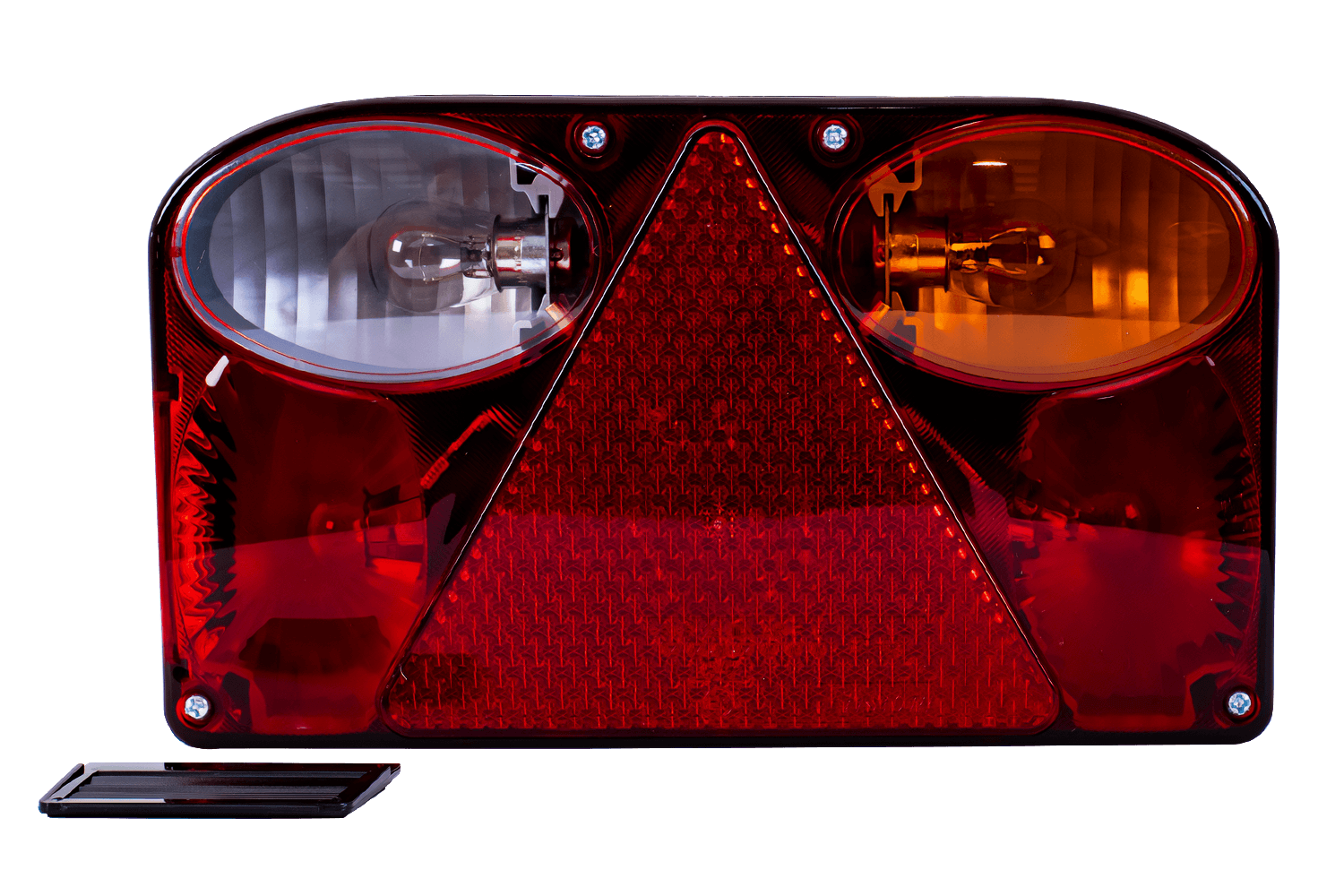 Fonctions de la lampe : feu de position qui assure la visibilité du véhicule lors de la conduite de nuit ; feu stop , signalisation de freinage ; clignotant , permettant d'indiquer l'intention de tourner ; feu de recul , qui facilite les manœuvres de marche arrière en améliorant la visibilité derrière le véhicule ; un feu antibrouillard qui augmente la sécurité dans des conditions météorologiques difficiles, telles que le brouillard ou de fortes précipitations ; un éclairage de plaque d'immatriculation qui assure la lisibilité du numéro d'immatriculation la nuit ; et un réflecteur qui augmente la visibilité du véhicule .