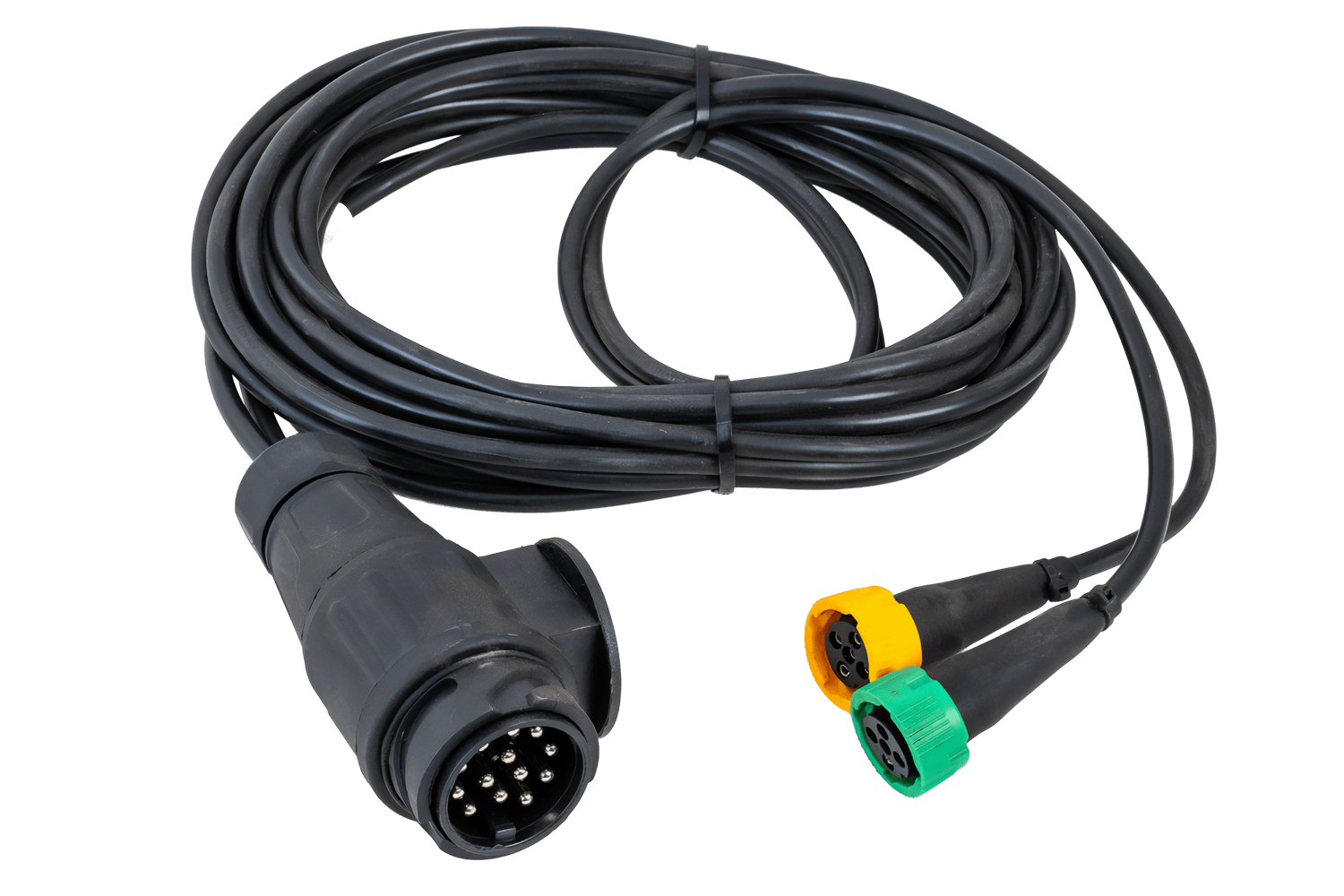 Le système électrique MANTES est une solution pratique et fiable pour les remorques de voiture. Le câble principal de 4 mètres, d'une section de 0,5 mm², est équipé d'une prise standard à 13 broches , garantissant une compatibilité universelle avec la plupart des véhicules.
