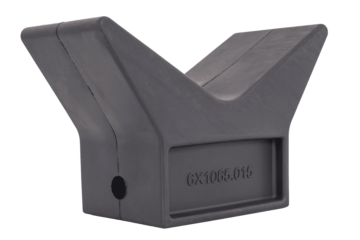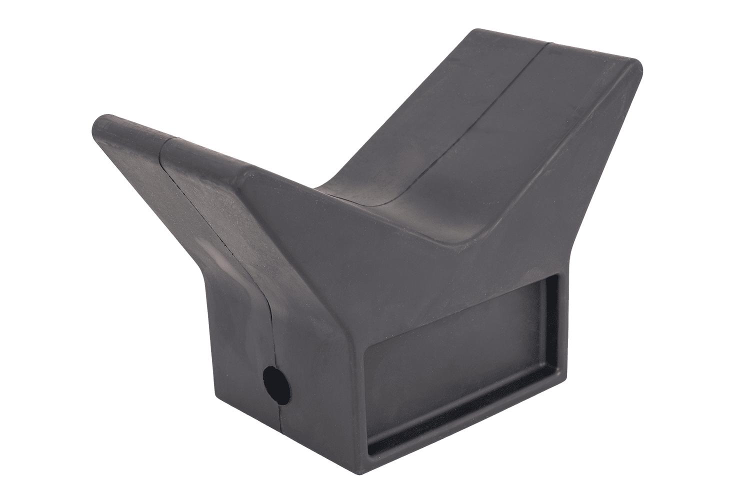 La butée d'étrave 6X1065.015 de KNOTT est un support d'étrave original en forme de V noir en plastique durable, conçu pour les remorques de bateau. Sa tâche principale est de stabiliser et de protéger la proue du bateau pendant le transport, le chargement et le déchargement. La forme en « V » spécialement conçue offre un support ferme à la coque, minimisant ainsi le risque de déplacement du bateau et de dommages mécaniques.