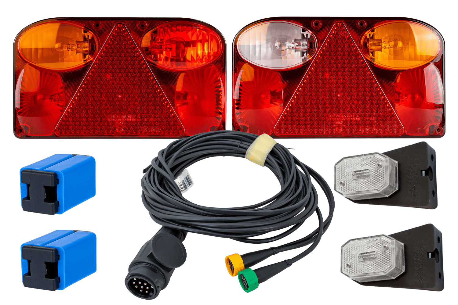 Le kit d'éclairage est une installation électrique complète qui assure un éclairage complet et conforme à la réglementation pour les remorques, semi-remorques et autres véhicules de transport , améliorant ainsi leur visibilité et leur sécurité routière. Il comprend des feux arrière, des feux de gabarit, un faisceau de câbles et des connecteurs rapides. Ces connecteurs rapides permettent une installation simple et rapide et assurent une connexion durable et sûre entre les feux de gabarit et le câblage. Grâce à des composants de haute qualité, le kit garantit un fonctionnement fiable et une excellente visibilité. et conforme aux normes de sécurité en vigueur. C'est la solution idéale pour ceux qui recherchent un système d'éclairage automobile complet et durable .