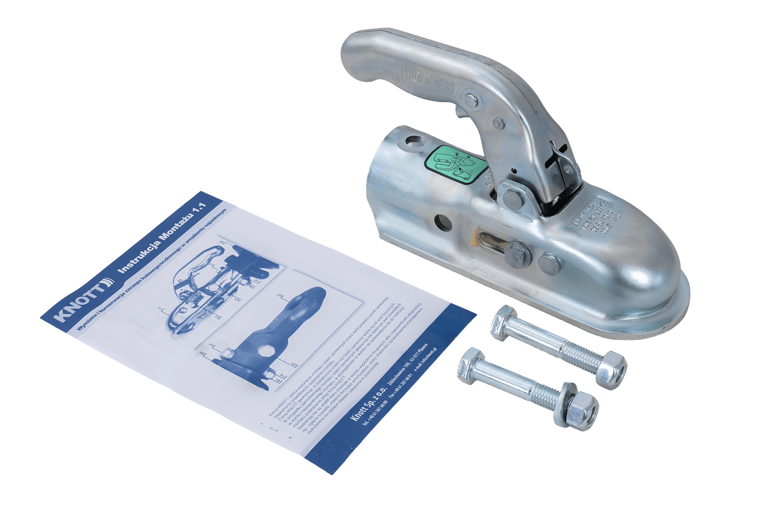 - Attelage à boule en fonte K20-B de KNOTT conçu pour les remorques lourdes et les remorques à plateau pesant jusqu'à 2000 kg. Monté sur un timon tubulaire de 45 mm, il offre une liaison stable au véhicule tracteur. L'ensemble comprend des vis, des écrous e