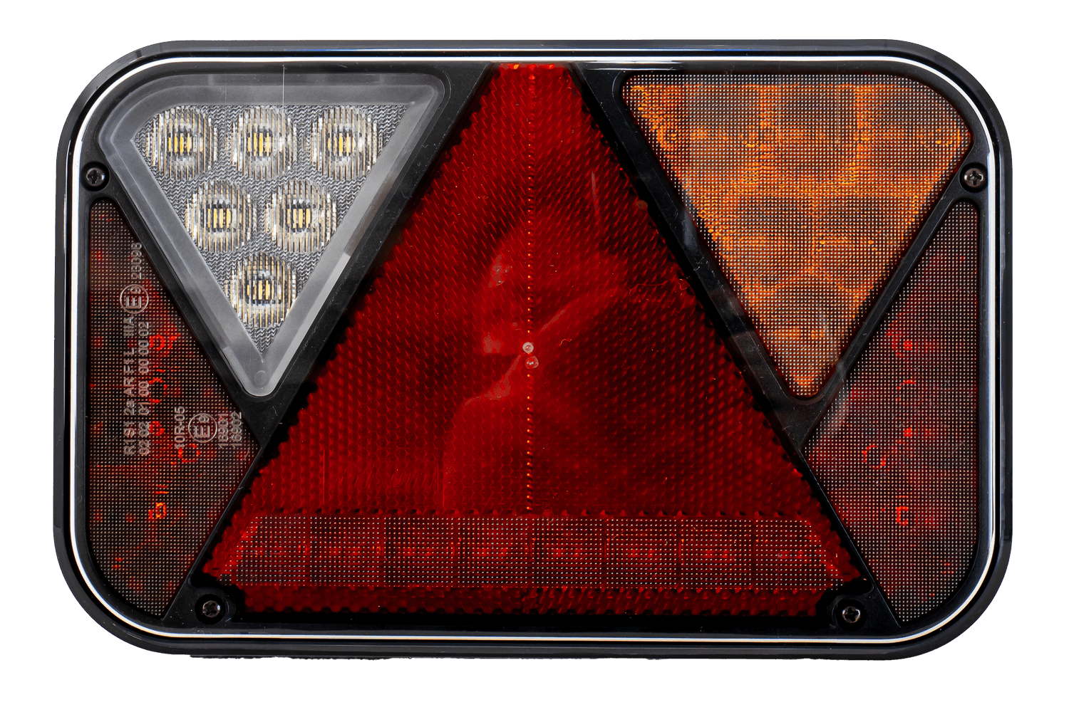 Fonctions du feu arrière : feu de position , qui assure la visibilité du véhicule lors de la conduite de nuit ; feu stop , signalisation de freinage ; clignotant , vous permettant d'indiquer votre intention de tourner ; feu de recul , qui facilite les manœuvres de marche arrière en améliorant la visibilité derrière le véhicule ; feu antibrouillard , qui augmente la sécurité dans des conditions météorologiques difficiles, telles que le brouillard ou de fortes pluies ; éclairage de plaque d'immatriculation , qui assure la visibilité du numéro d'immatriculation du véhicule la nuit ; et un triangle réfléchissant qui augmente la visibilité du véhicule .
