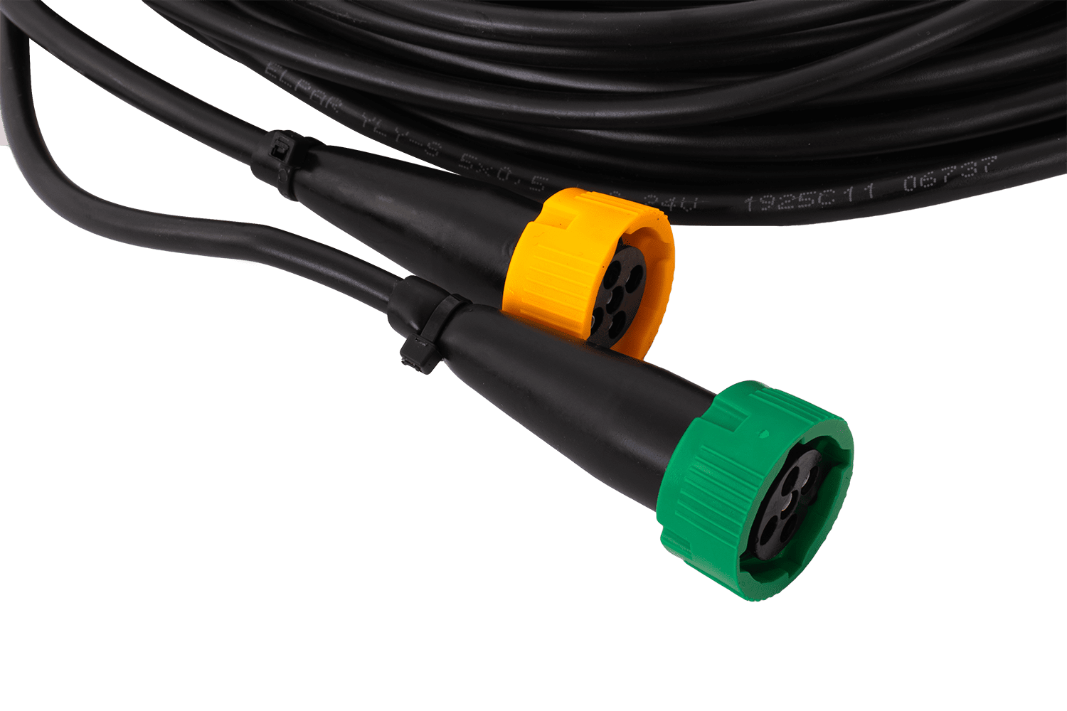 Le faisceau est équipé de deux connecteurs à baïonnette 5 broches pour connecter les feux arrière. Le système à baïonnette assure une installation rapide et sécurisée, éliminant ainsi le risque de déconnexion accidentelle pendant la conduite. La conception des connecteurs garantit une connexion étanche et protège les contacts contre la corrosion, ce qui se traduit par un fonctionnement à long terme et sans panne de l'ensemble de l'installation d'éclairage de la remorque.