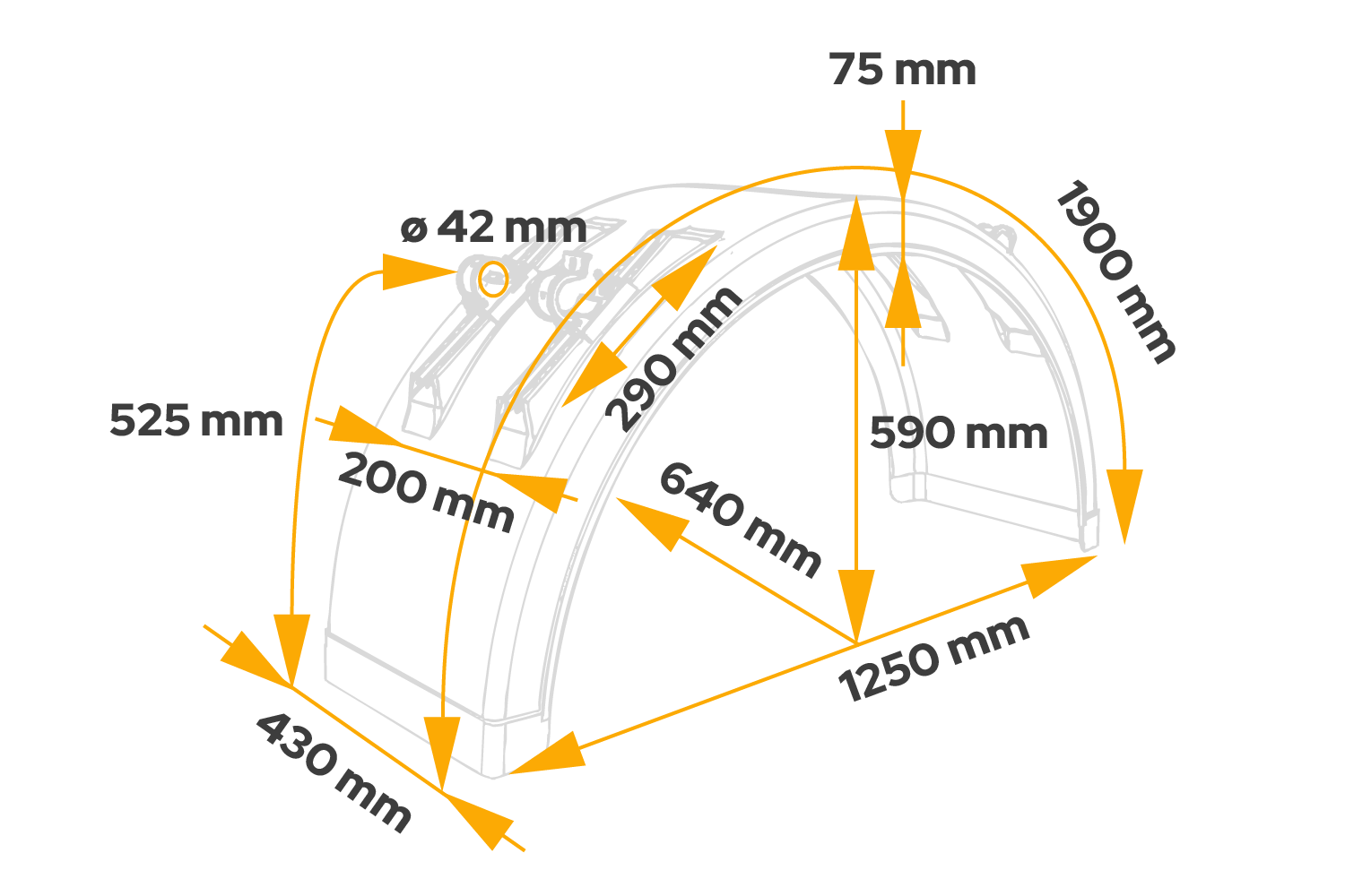 Garde-boue pour remorque 19,5-22,5" DOMAR DK2975 passage de roue 1250/430mm avec supports de montage