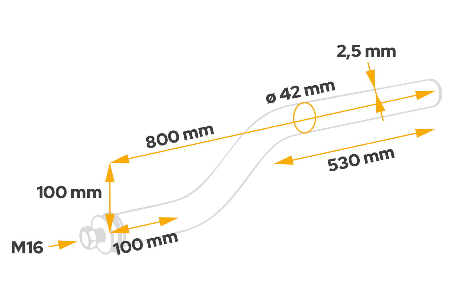 Tube coudé pour montage du garde-boue DOMAR DK8026, diamètre du support 42 mm