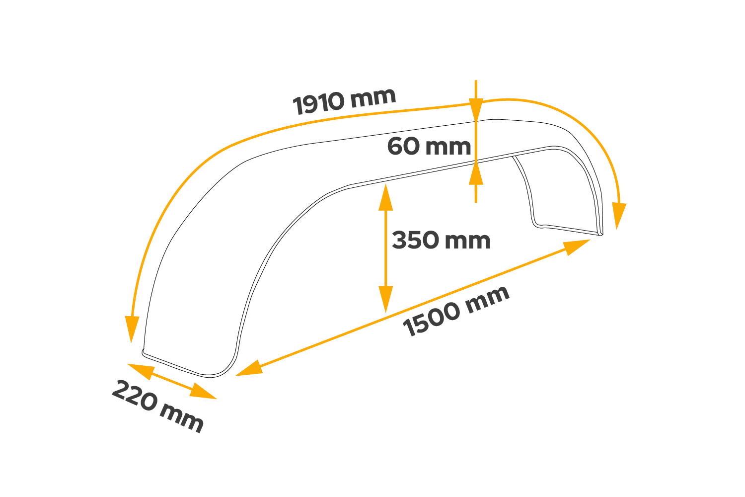 - Garde-boue tandem en aluminium D29250 DOMAR, pour les roues de 13 et 14 pouces, longueur de 1500 mm et d'une largeur de 220 mm, il protège la remorque et son chargement des dommages mécaniques et les autres usagers de la route des projections de cailloux.