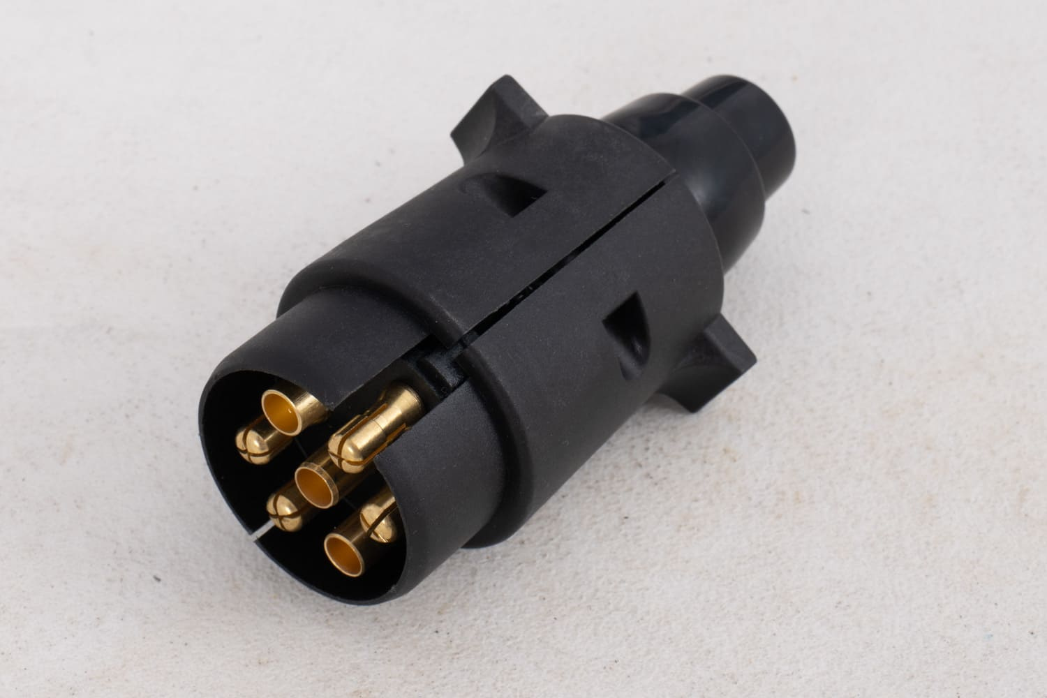 Cette prise de remorque à 7 broches est dotée de protubérances texturées et profilées supplémentaires sur son boîtier, assurant une meilleure prise et facilitant le branchement de la remorque au véhicule. Il arrive fréquemment que la prise de remorque ne se connecte pas du premier coup, nécessitant des manipulations pour trouver la bonne orientation. Cette prise simplifie considérablement le branchement.