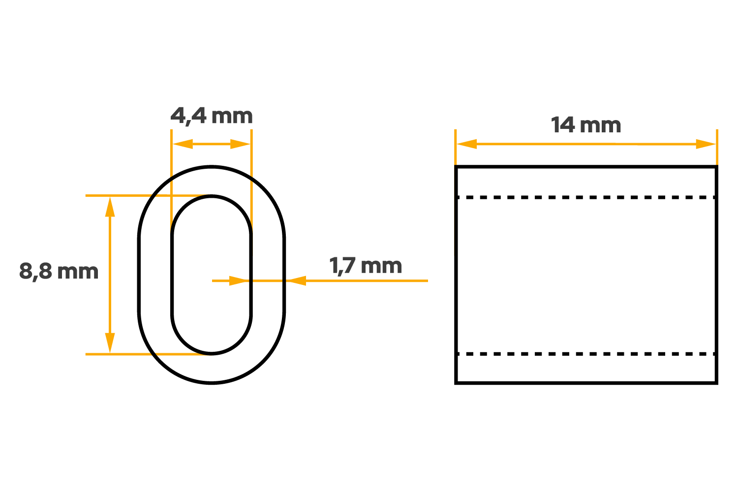 Le manchon en aluminium ZLA.4 de DROMET est conçu pour le serrage de câbles en acier d'un diamètre de 4 mm. Ses dimensions intérieures de manchon sont de 4,4 × 8,8 mm et sa longueur totale de 14 mm, ce qui permet un positionnement précis et durable du câble. Principalement utilisé dans la fabrication d'élingues, il permet de créer efficacement des boucles et des connexions dans les systèmes de fixation.