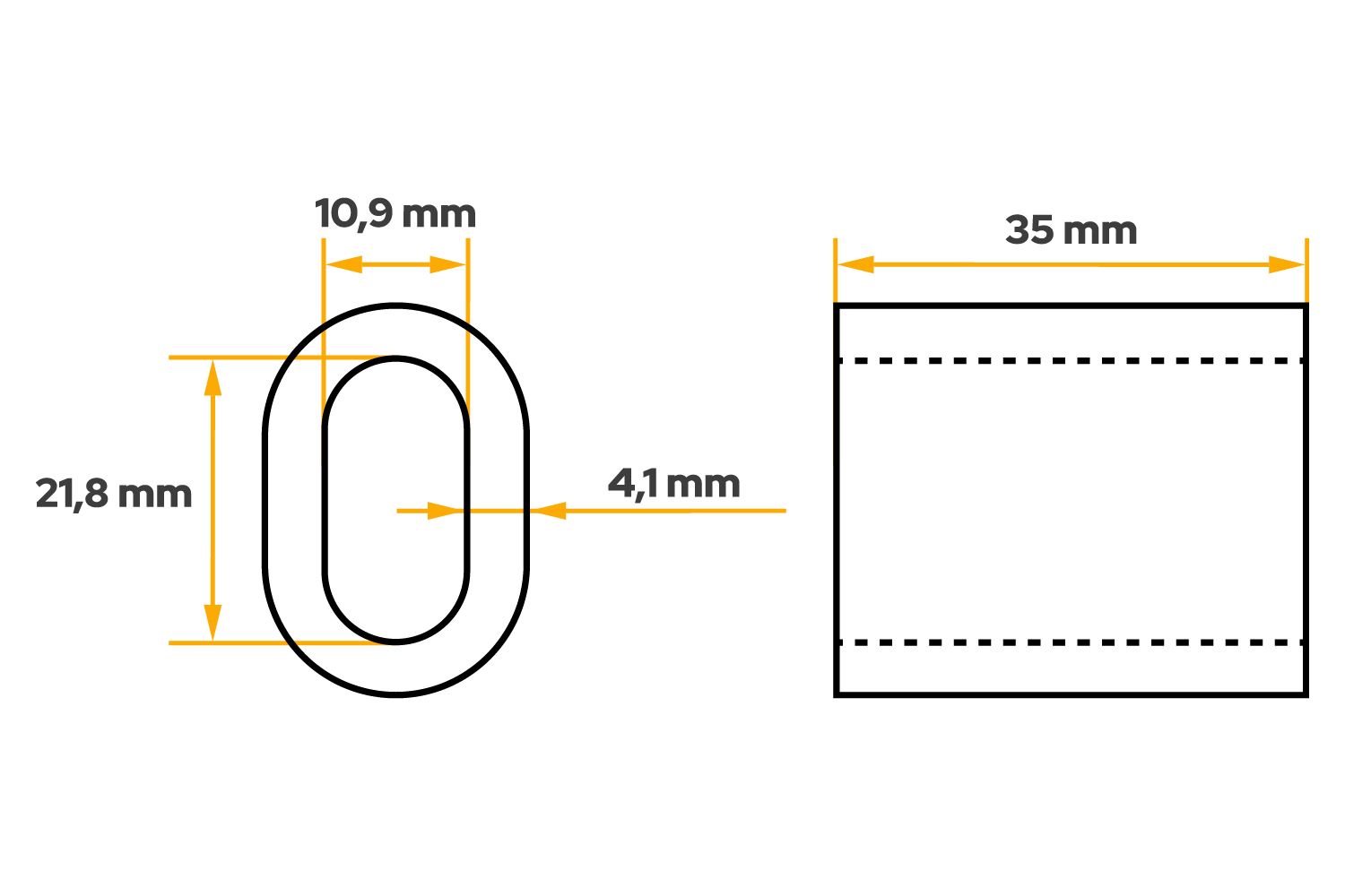 Le manchon en aluminium ZLA10 de DROMET est conçu pour le serrage de câbles en acier d'un diamètre de 10 mm. Ses dimensions intérieures de manchon sont de 10,9 × 21,8 mm et sa longueur totale de 35 mm permet un positionnement précis et durable du câble. Principalement utilisé dans la fabrication d'élingues, il permet de créer efficacement des boucles et des connexions dans les systèmes de fixation.