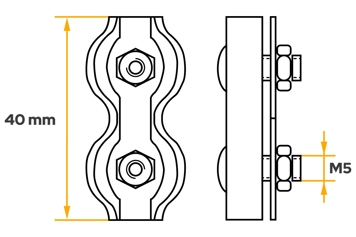 Le serre câble ZLS.4 de DROMET est un bloqueur de câble double (en série) conçu pour connecter, fixer et serrer des câbles en acier de 4 mm de diamètre. Doté d'un filetage M5 et d'une longueur totale de 40 mm, il assure un maintien stable et uniforme du câble en deux points, augmentant ainsi la durabilité et la fiabilité de la fixation. Grâce à sa conception en forme de selle, le bloqueur assure un montage rapide et une parfaite intégration dans les systèmes nécessitant une surface de pression plus importante.
