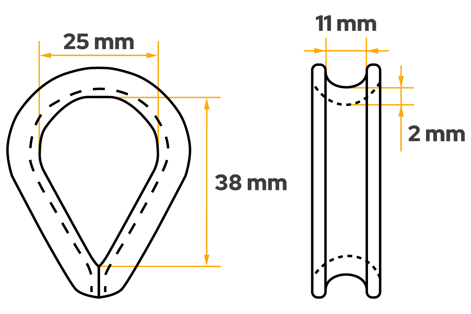 - Cosse-coeur KU10 de DROMET conçue pour les cordages de 10 mm de diamètre. Largement utilisée pour les cordages de remorquage, de levage, de navigation ou de transport, elle assure une protection contre l'abrasion et la déformation du cordage.
