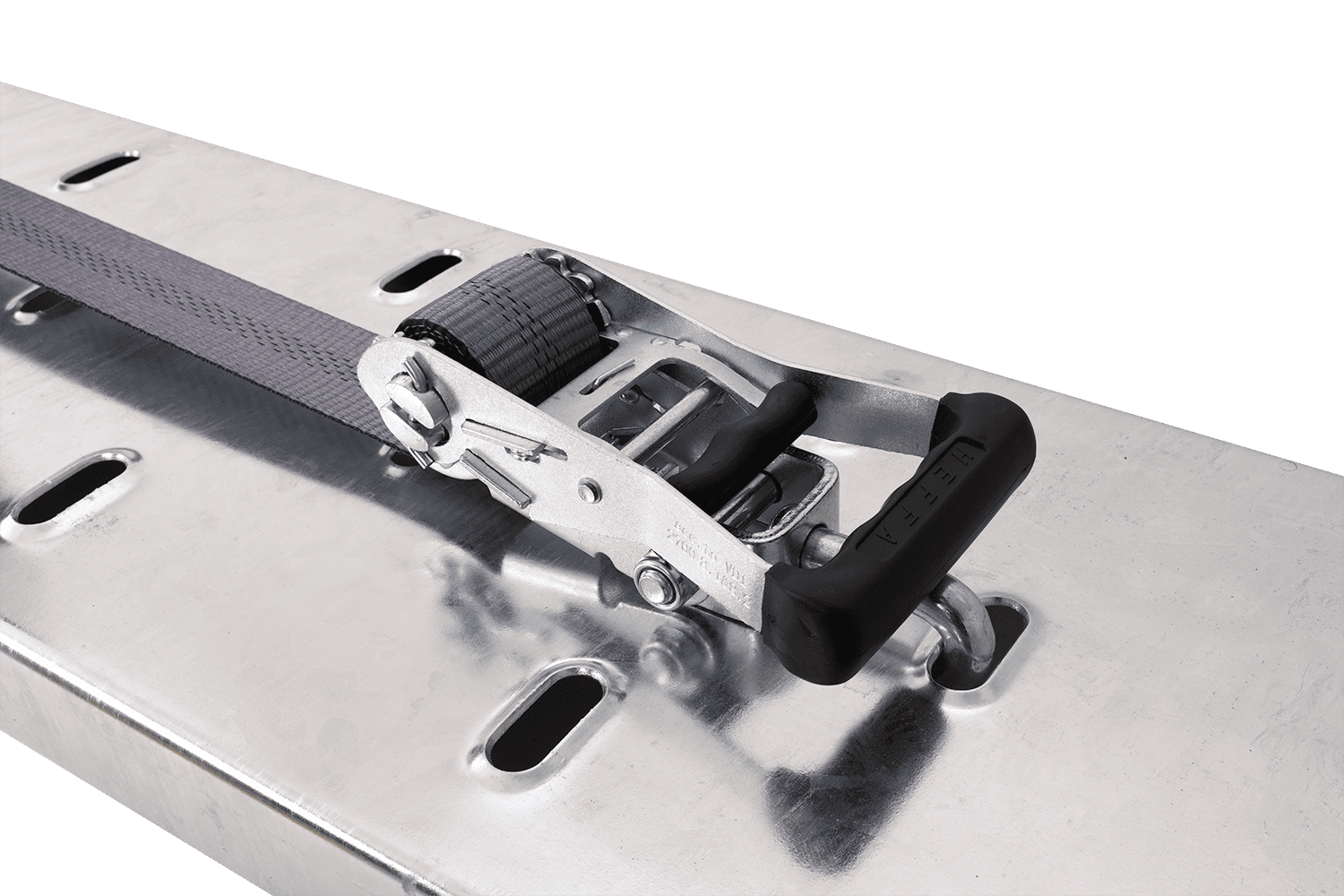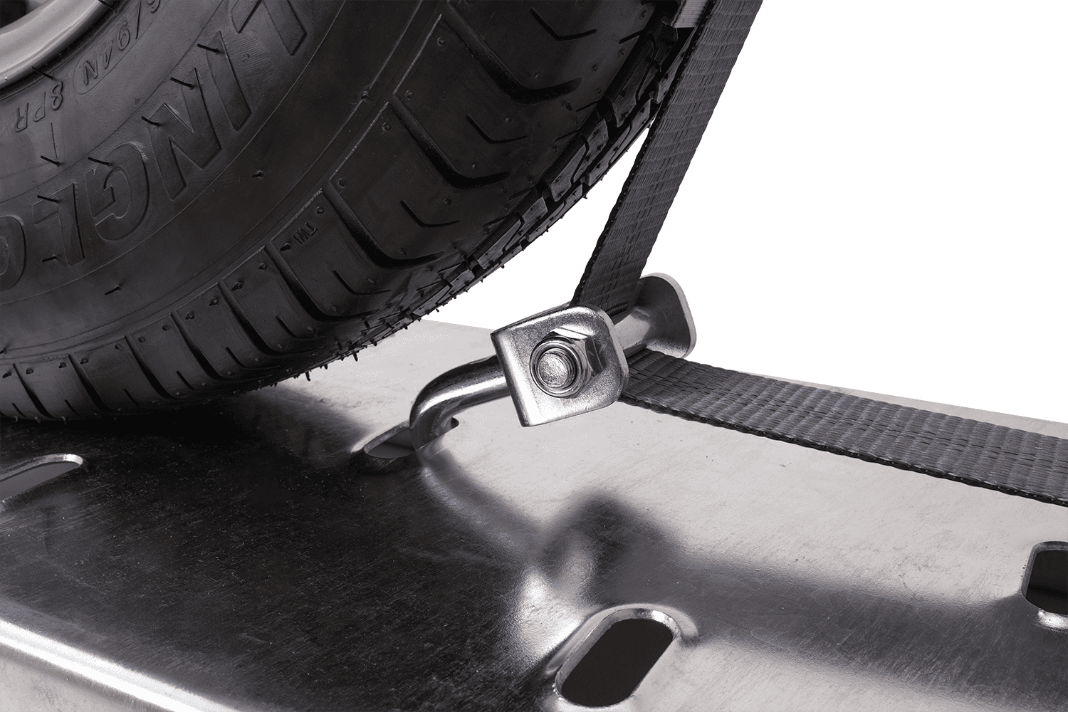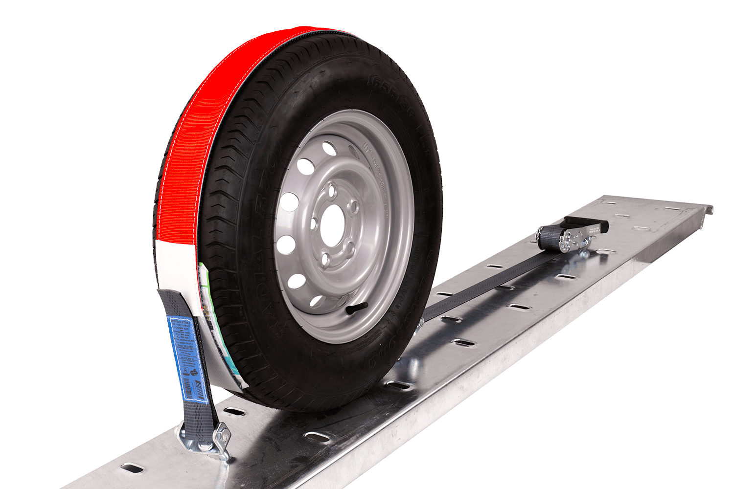 Une résistance de cerclage de 5 tonnes (5000 daN) est la charge maximale que la sangle peut supporter en toute sécurité pour attacher une roue de véhicule – l'une des méthodes les plus courantes pour arrimer des voitures sur des remorques à plateau. Cette méthode de fixation assure une répartition uniforme de la force, une meilleure stabilité du véhicule sur le plateau et un risque réduit de déplacement de la charge pendant la conduite.