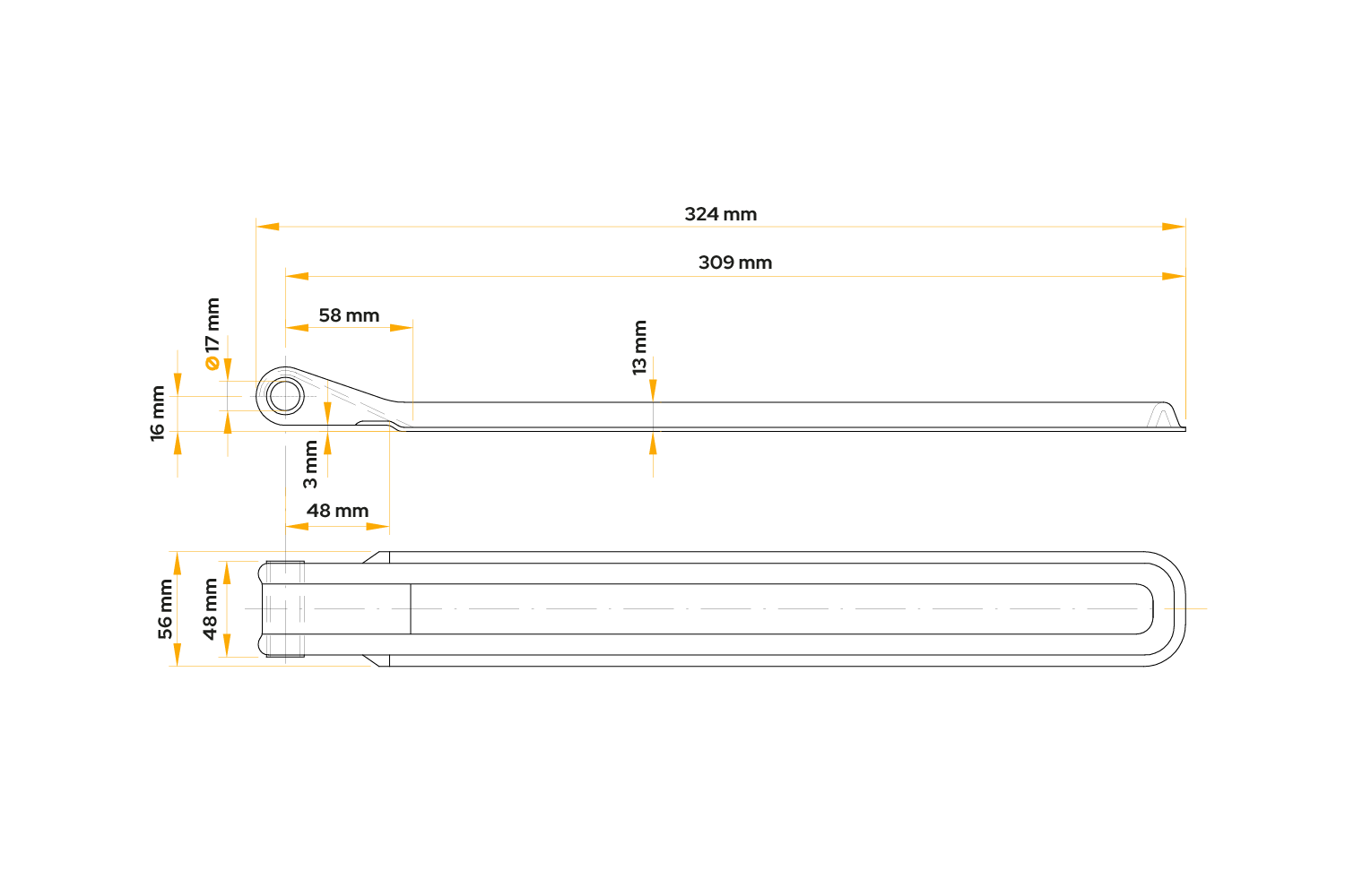 La charnière latérale BSCH 10-320 de WINTERHOFF est un composant robuste et durable conçu pour le montage des panneaux latéraux des remorques utilitaires, agricoles et de transport. D'une longueur de 324 mm et d'une largeur de 56 mm, elle est polyvalente et s'adapte facilement à différents types de carrosserie. Sa finition soignée garantit un fonctionnement stable et facilite l'ouverture et la fermeture des panneaux latéraux, améliorant ainsi la fonctionnalité de l'ensemble de la remorque.