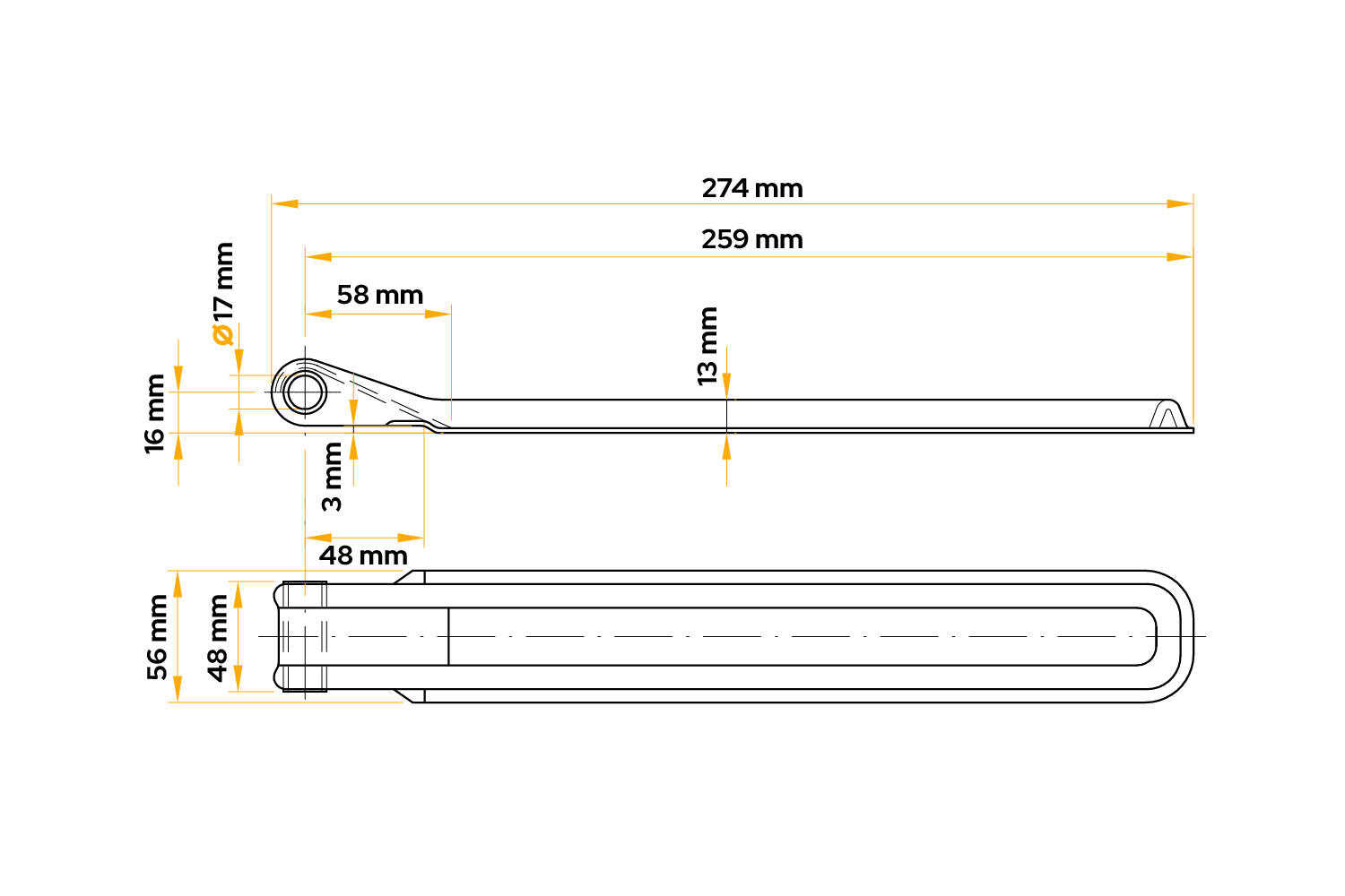La charnière latérale BSCH 10-17-270 de WINTERHOFF est un composant robuste et durable conçu pour le montage des panneaux latéraux des remorques utilitaires, agricoles et de transport. D'une longueur de 274 mm et d'une largeur de 56 mm, elle est polyvalente et s'adapte facilement à différents types de carrosserie. Sa finition soignée garantit un fonctionnement stable et facilite l'ouverture et la fermeture des panneaux latéraux, améliorant ainsi la fonctionnalité de l'ensemble de la remorque.