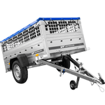 Remorque voiture 264x150 UNITRAILER GARDEN 265 KIPP avec ridelles grillagées, arceau H-800 et bâche bleue