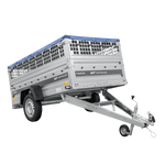 Remorque à un essieu 230x125 UNITRAILER FORCE 230 KIPP avec côtés grillagés, châssis H-0 et bâche bleue
