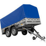 GARDEN TRAILER 264/2 KIPP remorque à deux essieux avec roue jockey, tiges de support, ridelles supplémentaires et bâche plate bleue