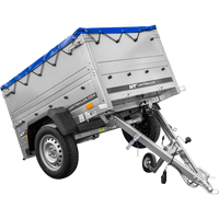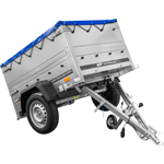 Remorque pour voiture 150x106 bâche bleue + arceau, PTAC 500 kg Garden Trailer 150 KIPP [avec roue jockey]
