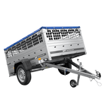 Remorque sans frein 230x125 avec bâche plate bleue, ridelles grillagées et roue jockey - Garden Trailer 230 KIPP