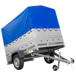 Remorque Garden Trailer 200 Kipp avec roue jockey, rehausses supplémentaire, arceau H-800 et bâche bleue